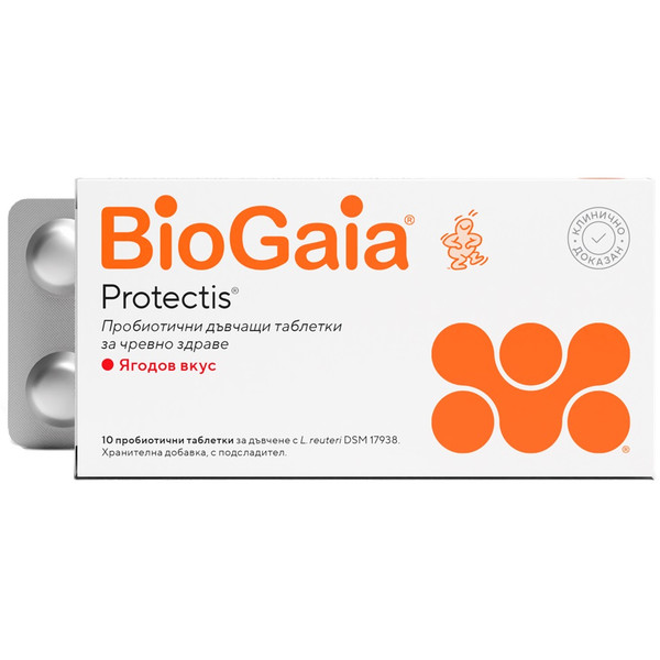 Пробиотични дъвчащи таблетки с приятен вкус на ягода, които подпомагат добрите храносмилателни процеси, като доставят млечнокисели активни бактерии Lactobacillus reuteri Protectis в чревния тракт. Подходящи за прием при антибиотичното лечение. За възрастни и деца над 2 годишна възраст. Без съдържание на захар, лактоза и глутен.