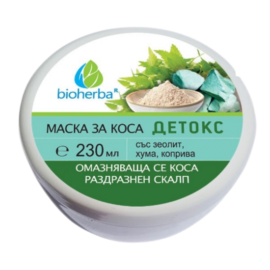 Натурална детоксикираща маска, която спомага за дълбоко почистване и възстановяване на косата и скалпа. Комбинацията от зеолит и хума нежно извлича натрупаните токсини, излишния себум и замърсявания, като в същото време регулира омазняването. Копривата подхранва косата в дълбочина, укрепва корените и стимулира естествения ѝ растеж.