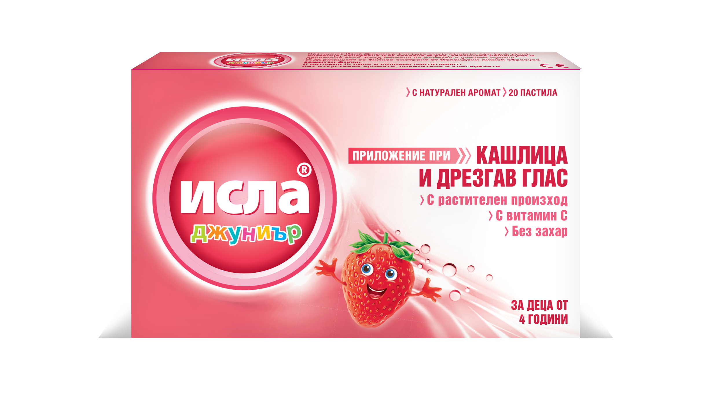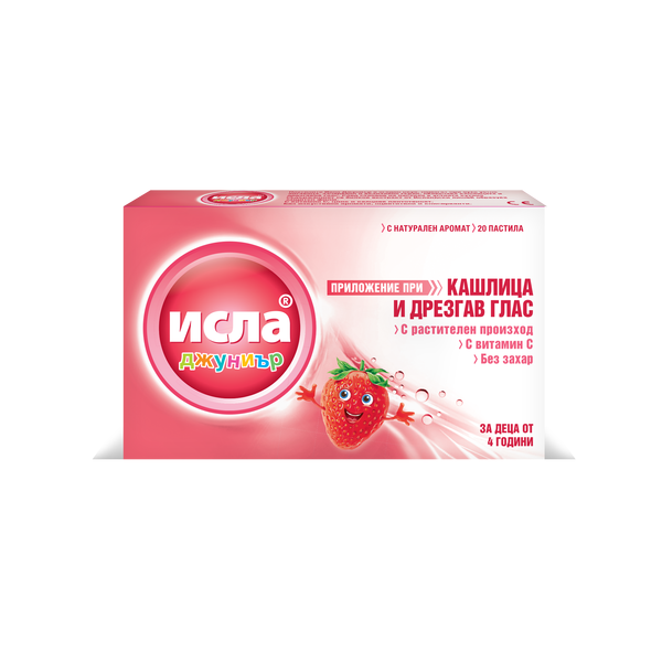 Исла Джинджър пастили са медицинско изделие на растителна основа, предназначено за облекчаване на суха кашлица и дрезгав глас. Благодарение на високото съдържание на муцини от исландски лишей, пастилите покриват гърлото с протективен слой и го предпазват от външни дразнители. Продуктът подпомага по-бързото възстановяване на лигавицата и е подходящ при гласова умора и сух въздух. Формулата е без захар, щадяща зъбите и с добавен витамин C. Подходящ е за деца над четиригодишна възраст.