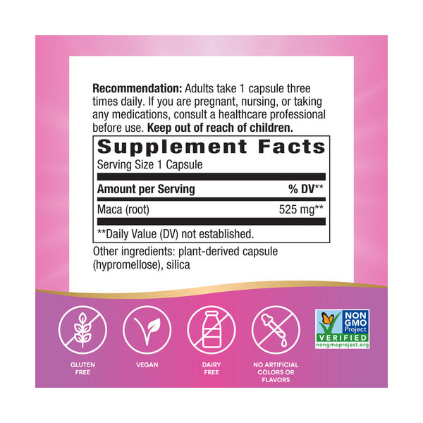 Екстрактът от корен на мака предоставя богат източник на витамини, минерали и аминокиселини, които подпомагат енергийния обмен и баланса на хормоните. Тя е силен адаптоген, което означава че подпомага възстановяването след стрес, изтощение и умствена преумора. Освен това тя има тонизиращи, невроукрепващи, хормонорегулиращи и стимулиращи либидото ефекти.