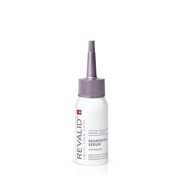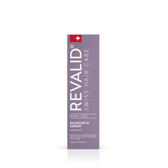 Серумът против косопад от Ревалид, съдържа Redensyl - патентована активна съставка от областта на регенеративната медицина, която доказано съживява клетките във фоликулите, отговорни за растежа на косата. Неговият ефект се допълва от антиоксидантни етерични масла от екстракт от цветя Artemisia от Швейцарските Алпи, както и аминокиселини и пантенол.