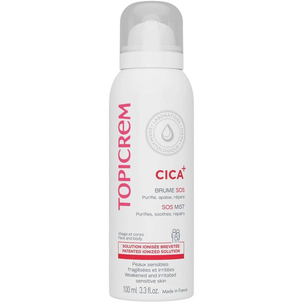 Topicrem CICA+ SOS Mist е вашият незаменим помощник при кожни раздразнения, зачервявания и повърхностни наранявания. Този спрей предлага тройно действие: успокоява, пречиства и възстановява кожата благодарение на патентована йонизирана вода, богата на минерали. Подходящ е за цялото семейство (деца над 3 г.) и може да се прилага върху лицето, тялото и лигавиците. Ултра-фината мъгла осигурява незабавно усещане за свежест и облекчение, без да се налага да докосвате чувствителната кожа. Продуктът е без аромат и не оставя следи, като същевременно укрепва кожната бариера.